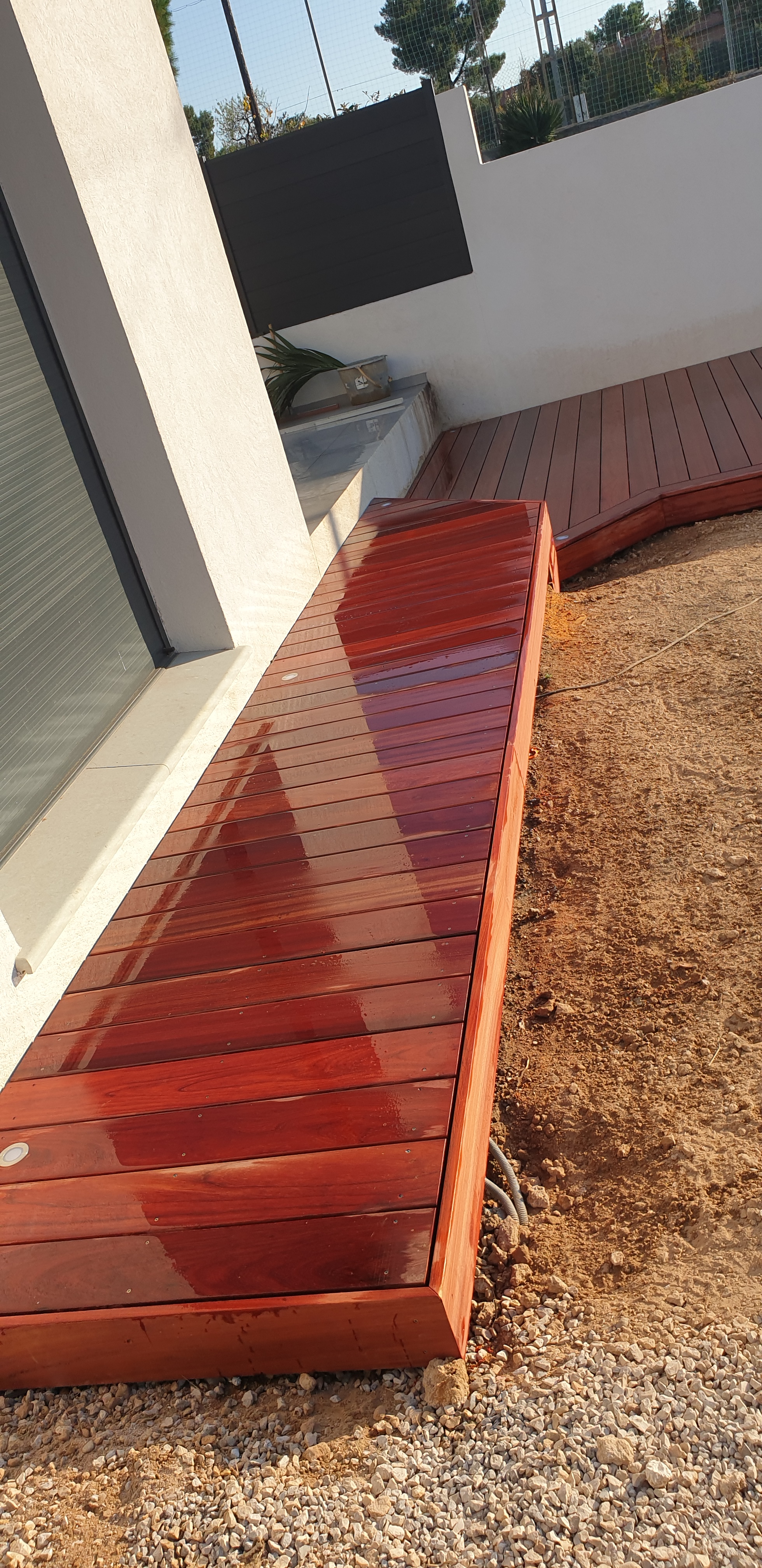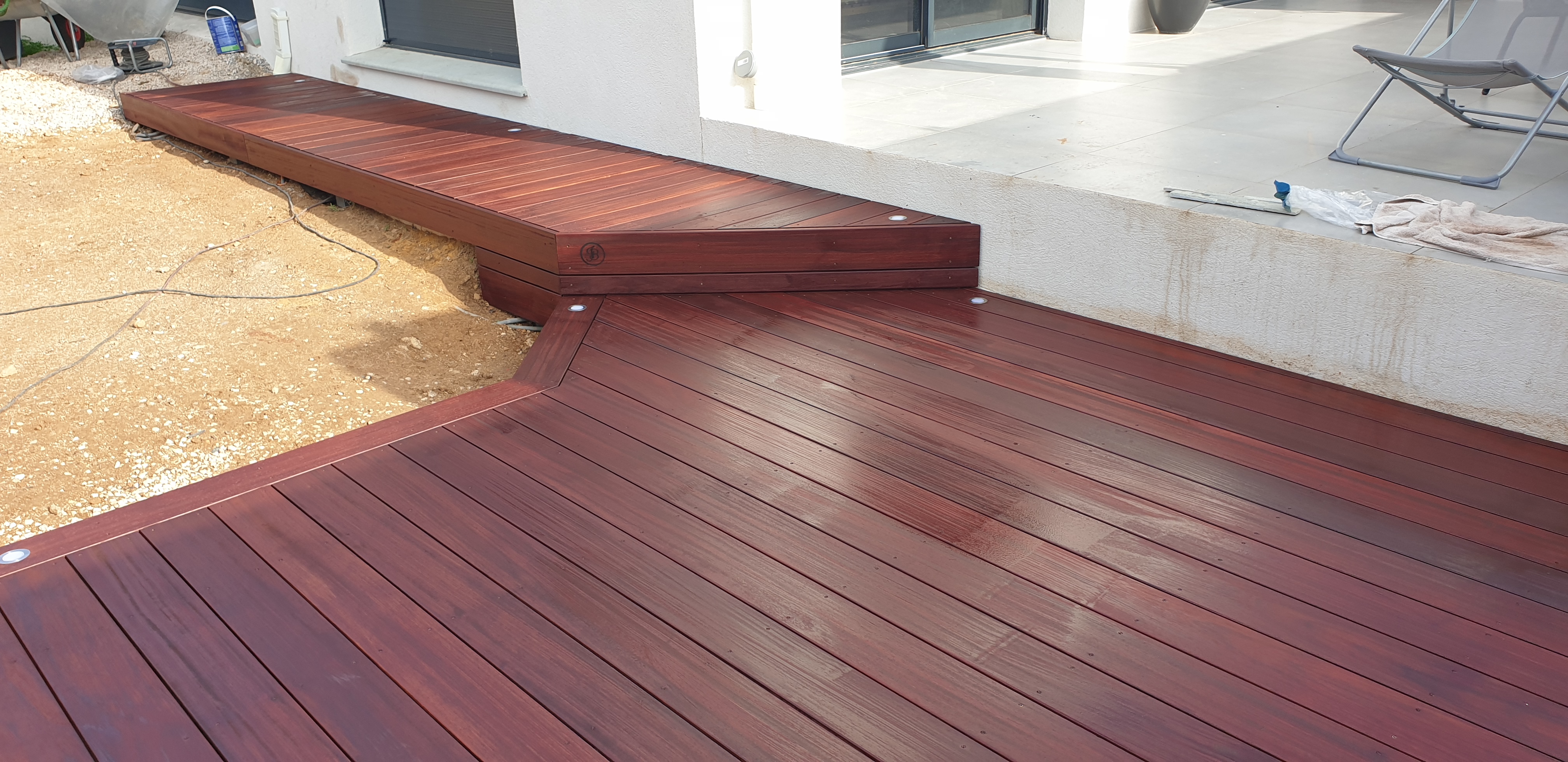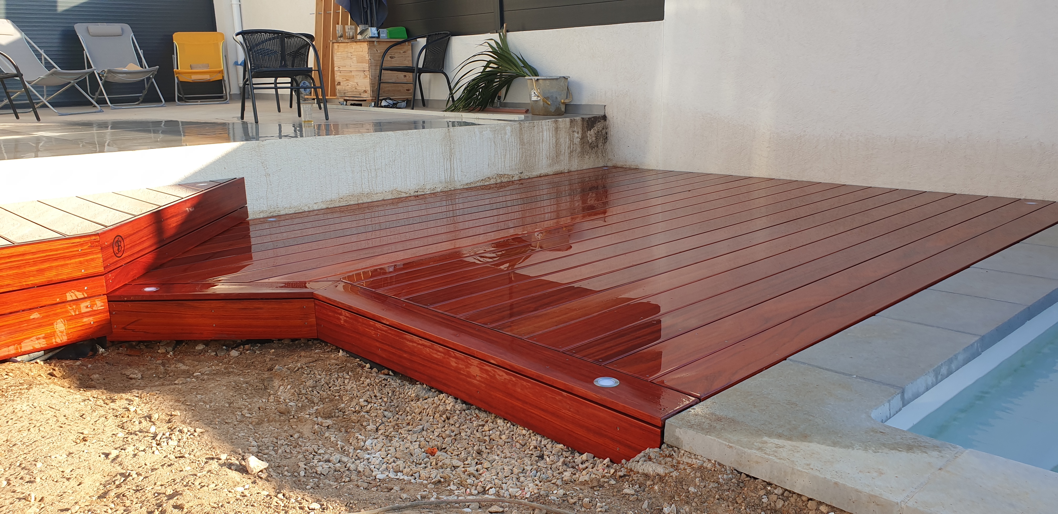 24 m2, lambourdes exotiques sur structure acier galvanisé, platelage en Padouk + saturateur