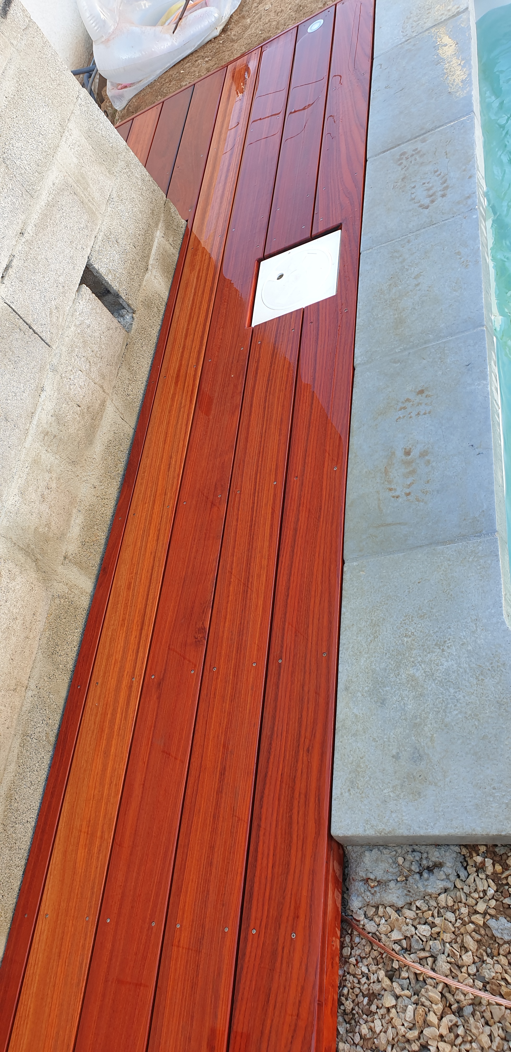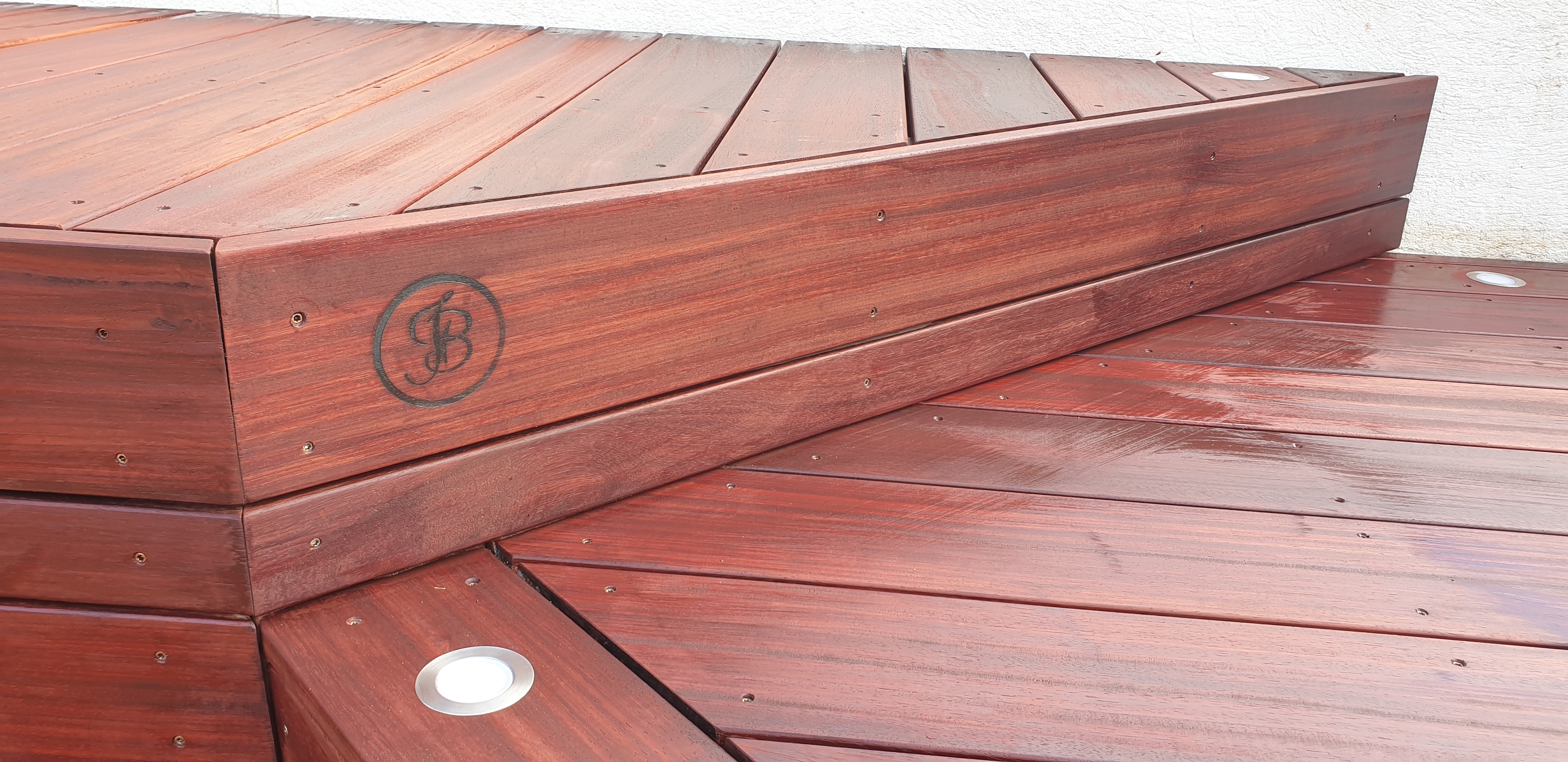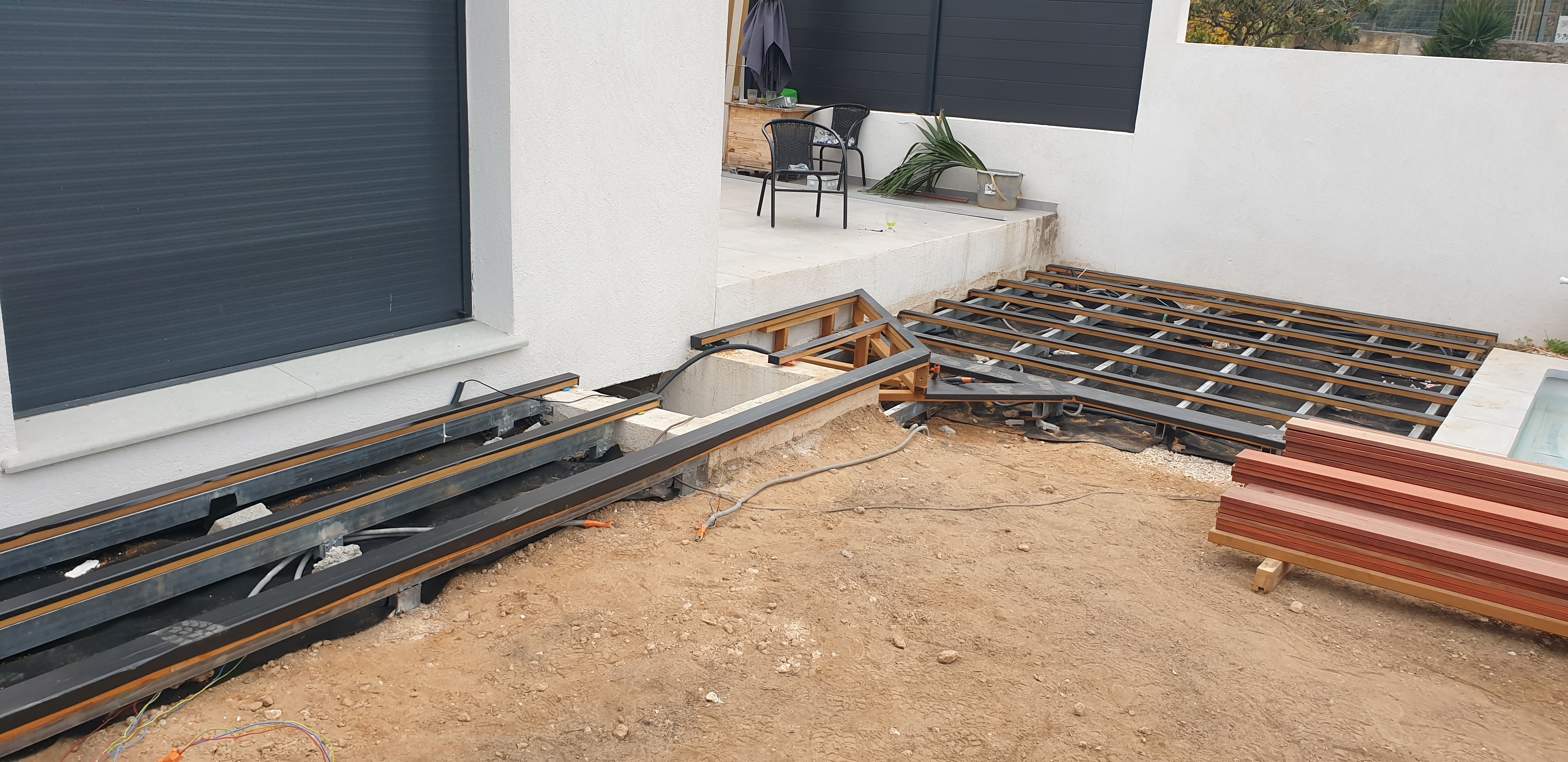 24 m2, lambourdes exotiques sur structure acier galvanisé, platelage en Padouk + saturateur