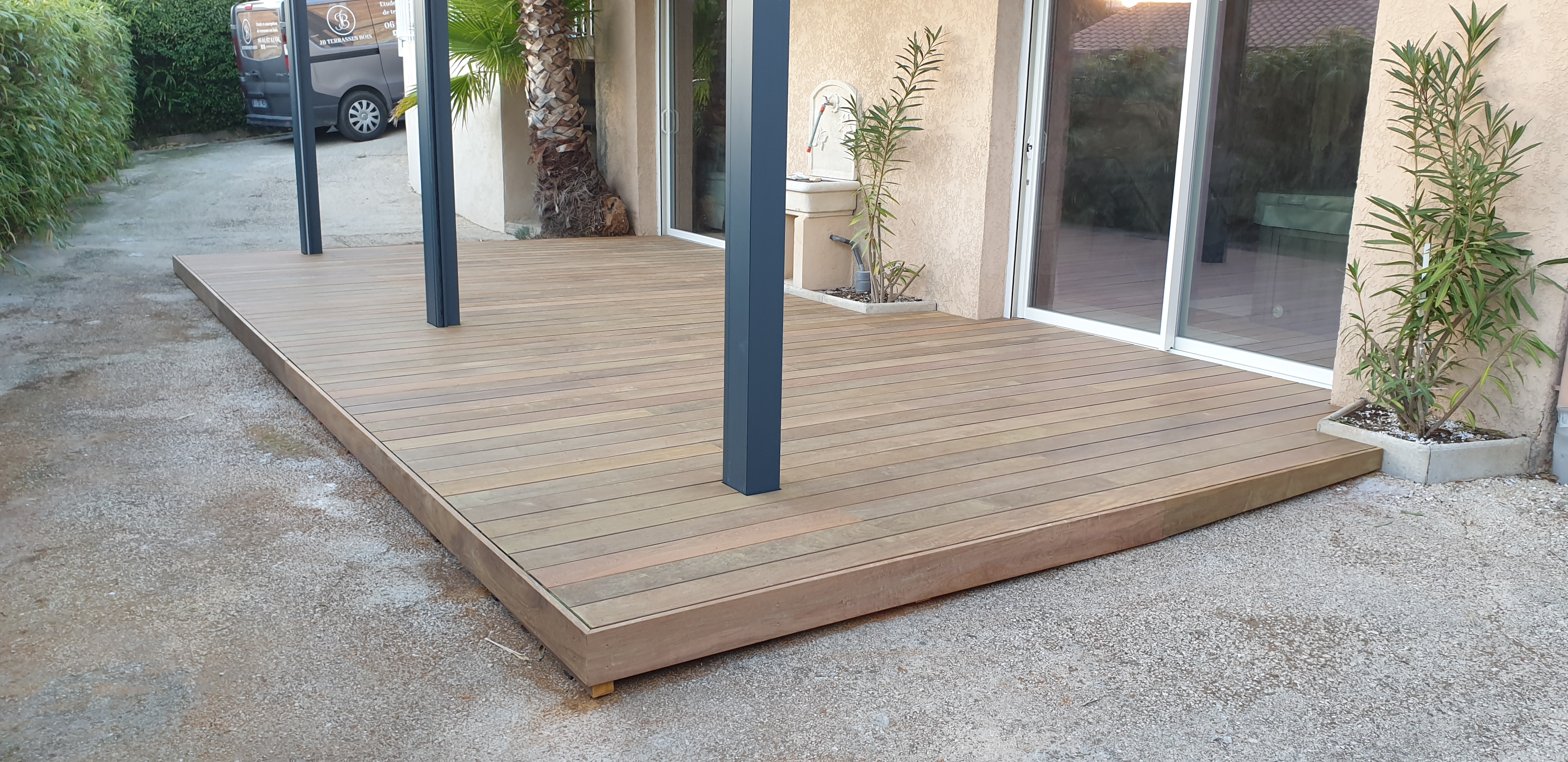 32 m2, structure lambourdes exotiques, platelage IPE.